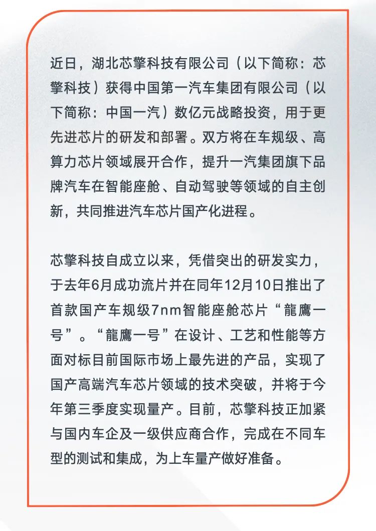 鼎和高達被投企業 - 億咖通旗下芯擎科技獲中國一汽集團戰略投資,芯擎在車芯賽道全面提速
