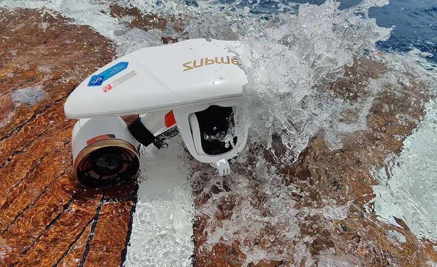 2017年5月,深之藍公司發布白鯊MIX水下自游器。被稱為第一款“水下平衡車”的白鯊MIX能夠以每秒1.5米的速度提供水下前進動力,還可以掛載水下攝影裝備。2018年,產品亮相美國拉斯維加斯消費電子展。目前,深之藍公司推出的水下助推器、動力浮板、水下無人機、智能沖浪板等個人消費級產品,近90%的業績來自出口。
