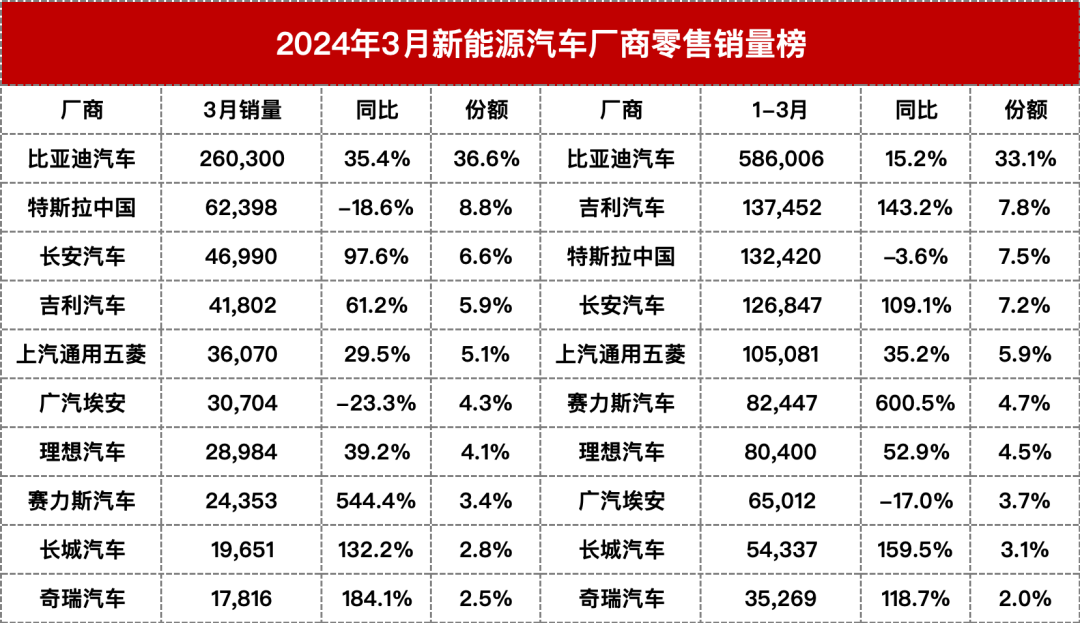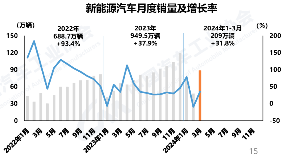 3月,新能源汽車產(chǎn)銷分別完成86.3萬(wàn)輛和88.3萬(wàn)輛,同比分別增長(zhǎng)28.1%和35.3%,市場(chǎng)占有率達(dá)到32.8%。1-3月,新能源汽車產(chǎn)銷分別完成211.5萬(wàn)輛和209萬(wàn)輛,同比分別增長(zhǎng)28.2%和31.8%,市場(chǎng)占有率達(dá)到31.1%。